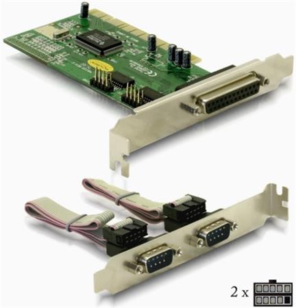 Delock PCI karta rozšiřuje váš počítač o dva externí sériové porty a jeden externí paralelní port. Umožňuje připojení zařízení jako jsou skenery, tiskárny, myši apod.