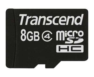 microSDHC karta class 4, zaručující minimální rychlost zápisu 4 MB/sekundu.