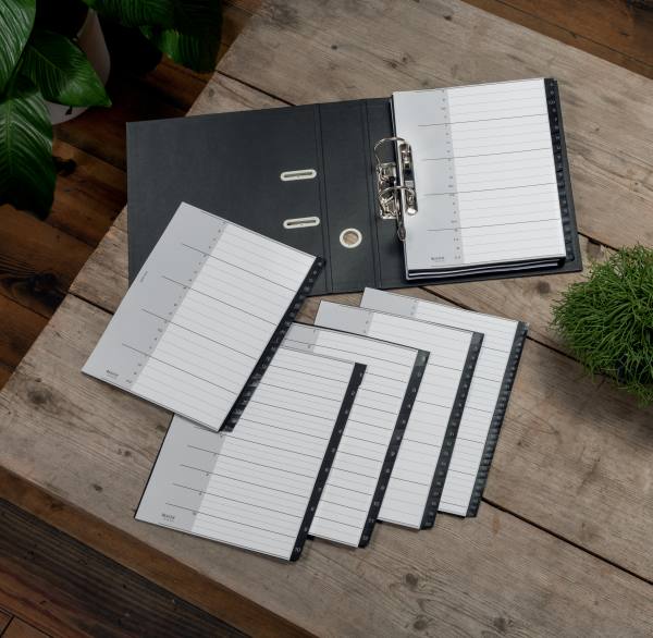 Pro přehlednou organizaci dokumentů A4 20 dělicích listů označených A-Z pro rychlou orientaci v založených dokumentech Díky extra širokému formátu A4 maxi nezakrývají ani dokumenty uložené v euroobalech štítky dělicích listů Přední list s prostorem pro popis je vyroben z odolného 100% recyklovaného kartonu gramáže 160 g/m2 Univerzální multiperforace s 11 otvory pro založení do pákového i kroužkového pořadače Otíratelný PP povrch je odolný proti roztržení 0,115 mm recyklovaný PP Vyrobeno v Evropě Obal: ze 70% recyklované plastové sáčky, plně recyklovatelné |