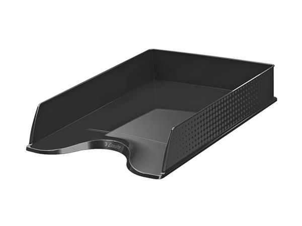 Moderní odkladač pro uložení dokumentů formátu A4 na pracovním stole s unikátním embosovaným povrchem v klasických barvách. V klasických barvách. Unikátní tečkovaný embosing. A4. Lze kombinovat s ostatními výrobky z řady Esselte Europost Unikátní embosovaný povrch (tečkovaný) po stranách odkladače Kolmé nebo předsazené stohování ve 3 pozicích pro lepší organizaci Zaoblený výřez pro snazší přístup k dokumentům |