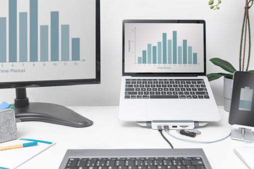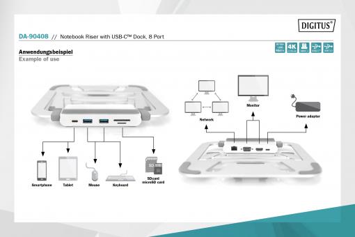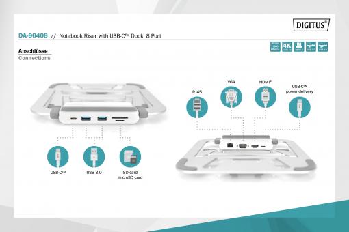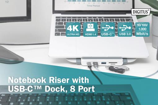 USB-C Dock (8-Port) s Notebook Riser stříbrná / bílá