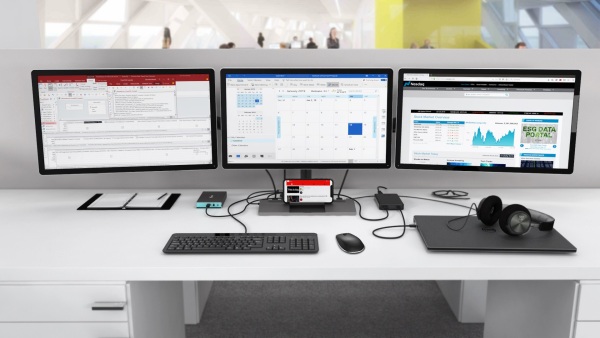 Kancelářská dokovací stanice USB-C, která podporuje až 2x externí monitor v rozlišení 4K. Stanice je kompatibilní s jakýmkoliv notebookem vybaveným portem USB-C nebo Thunderbolt 3. 6x USB port, spolehlivé a rychlé připojení do podnikové sítě díky integrovanému LAN portu a podpora instalace za monitor, to vše z této dokovací stanice dělá ideálního společníka pro profesionály. Samozřejmostí je podpora nabíjení vašeho notebooku či tabletu, a to až 100 W (napájecí adaptér je přiložen). Integrovaný nejnovější protokol DP 1.4 podporuje rovněž rozlišení 5K/60 Hz, což mohou ocenit i profesionální grafici, datoví analytici, filmoví editoři, případně milovníci videa ve vysokém rozlišení. K dokovací stanici je rovněž přiložen napájecí adaptér USB-C o celkovém výkonu 112 W (USB-C port: 100 W a 1x USB-A port o výkonu 12W) Poznámka: operační systém macOS nepodporuje technologii více obrazového video přenosu Multi Stream Transport (MST), což znamená, že v případě připojení k macOS bude na obou připojených monitorech promítnut stejný obraz. Připojte až dva externí monitory 4K/30Hz Power delivery: až 100 W (přiložen napájecí adaptér o celkovém výkonu 112 W) 1x HDMI, 1x DisplayPort 3x USB 3.1, 1x USB-C 3.1 a 2x USB 2.0 vám umožní snadné připojení vašich USB zařízení a periferií. Gigabitový Ethernet RJ-45 poskytuje spolehlivé, robustní a vysokorychlostní internetové připojení s podporou 10/100/1000 Mbps rychlostí Kombinovaný jack pro audio a mikrofon na předním panelu Zámek Kensington zajistí ochranu proti zcizení, zejména v prostředí sdílených kanceláří či veřejně přístupných míst Vypínač dokovací stanice umožní maximální úsporu elektrické energie Dokovací stanice podporuje držák VESA pro inteligentní vertikální instalaci za monitor s VESA podporou Podporuje Windows 10, macOS X, Android, ChromeOS a Linux Specifikace DOKOVACÍ STANICE: 1x integrovaný USB-C kabel pro připojení k zařízení (100 cm) Technologie dokovací stanice: USB-C (MST) Power Delivery: 100 W Video Porty: 1x HDMI, 1x DisplayPort (podporující DP++) Rozlišení: DP 1.2 HBR2: 1 monitor – 1x HDMI › až 4K/30Hz 1 monitor – 1x DisplayPort › až 4K/30Hz 2 monitory – 1x DisplayPort + 1x HDMI › až 2x 1080p/60Hz* DP 1.4 HBR3: 1 monitor – 1x HDMI › až 4K/60Hz 1 monitor – 1x DisplayPort › až 4K/60Hz 2 monitory – 1x DisplayPort + 1x HDMI › až 2x 1440p/60Hz* 2 monitory – 1x DisplayPort + 1x HDMI › až 2x 4K/30Hz* DP 1.4 HBR3 DSC: 1 monitor – 1x HDMI › až 4K/60Hz 1 monitor – 1x DisplayPort › až 5K/60Hz 2 monitory – 1x DisplayPort + 1x HDMI › až 2x 4K/60Hz* 1x USB-C port Gen. 2 (pouze pro data) 1x USB-C port gen. 2 + PD (data + power delivery) 3x USB 3.0 port 2x USB 2.0 port 1x Ethernet GLAN RJ-45 port (Realtek RTL8153) 1x 3,5 mm Combo Audio port LED indikace Přepínač ON/OFF pro zapnutí a vypnutí dokovací stanice Podpora pro Kensington lock Podpora pro VESA uchycení OS: Windows 10, macOS, Android, Chrome OS a Linux s nejnovějšími aktualizacemi Rozměry produktu: 113 x 113 x 40 mm UNIVERZÁLNÍ NABÍJECÍ ADAPTÉR: Univerzální 112W USB-C napájecí adaptér pro napájení notebooků, tabletů, smartphonů a jiných zařízení s USB-C nabíjecím portem Vstupní napětí AC 100-240V, 50-60Hz, max. 2.3A Výstupní výkon (max.): 112 W Účinnost: více než 86% Výstupní napětí USB-C: DC 5V / 9V / 12V / 15V / 19V / 20V Výstupní proud USB-C: max. 5A Výstupní napětí USB-A: DC 5V Výstupní proud USB-A: max. 2.4A Ochrana proti: proudovému přetížení, přepětí, zkratu a přehřátí. Operační teploty: 0°C – 40°C Relativní vlhkost: 10% – 100% Rozměry balení: 338 x 150 x 55 mm Hmotnost balení: 998 g Hardwarové požadavky: Zařízení s volným USB-C nebo Thunderbolt 3 Požadavky pro funkci Power Delivery: Zařízení s volným USB-C či Thunderbolt 3 portem s podporou „Power Delivery“ Požadavky pro video výstup: Zařízení s volným USB-C portem s podporou “DisplayPort Alternate Mode” či portem Thunderbolt 3 Pro využití vyšších obnovovacích frekvencí než 60 Hz je zapotřebí monitor, který tyto obnovovací frekvence podporuje Operační systém: Windows 10, macOS*, Android, Chrome OS a Linux s nejnovějšími aktualizacemi * Operační systém macOS nepodporuje technologii více-obrazového video přenosu Multi Stream Transport (MST), což znamená, že v případě připojení k macOS bude na obou připojených monitorech promítnut stejný obraz. |