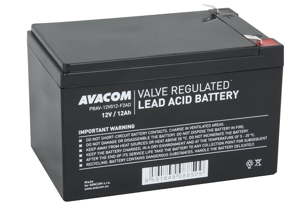 Parametry: Konektory: F2 Napětí: 12V Kapacita: 12Ah Rozměry (d x š x v): 151 x 98 x 93mm Rozměrové tolerance: 151(+1,5-1,5) x 98(+1-1) x 95(+1-1)mm Hmotnost: 3,4kg Elektrolyt: AGM Typ akumulátoru: Standard Životnost: 3-5 let (dle normy Eurobat nebo v pohotovostním režimu "Standby") VRLA - Ventilem řízený olověný akumulátor z anglického Valve Regulated Lead Acid je typ bezúdržbového akumulátoru, který lze provozovat v libovolné poloze, protože elektrolyt není v tekutém stavu. Hlavní vlastnosti akumulátoru jsou spolehlivost, dlouhá provozní životnost, otřesuvzdornost a vysoká kvalita zpracování. AGM - Akumulátor s elektrolytem nasáknutým do netkané textilie ze skelného vlákna (Absorbed Glass Mat) Standard - Nejčastěji využívaný akumulátor pro záložní zdroje UPS v pohotovostním režimu "Standby" nebo pro podobné aplikace s provozem nevyžadující speciální nároky. Nejčastější aplikace a oblasti využití: - Záložní zdroje UPS - Elektronické zabezpečovací systémy EZS - Elektrická požární signalizace EPS - Zdravotnická technika - Telekomunikační systémy a vysílače - Fotopasti - Dětská elektrická vozítka a hračky - Echoloty a sonary - Schodišťové sedačky a výtahy - Záložní zdroje pro čerpadla Nahrazuje: CJ12-12, GIV-S12-12, GIV12-12, GP12120, GP12120F2, GP12120F2, HR1251W, HR1251WF2, HR1251WF2, CT12-12, OT 12-12, FG12-60W, FG12100, FG12120, FGC21202, FW12-12U, OT12-12, HZS12-12, WP12-12, WP12-12A, WPL12-12, LT12-12, MS12-12, NP12-12, ST 12012, UHR12-12, UL12-12, UL14-12, UXL12-12, NP12-12, TP 12-12, DJW12-14, DJW12-12, B9656, OT12-12, SL12-12, LPX12-12, RT1280, RT1280L, RT1290EP |
