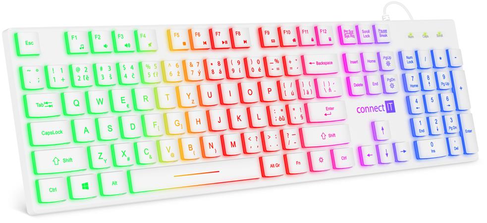 CONNECT IT Chocolate RNBW kancelářská podsvícená klávesnice (CZ + SK verze) WHITE