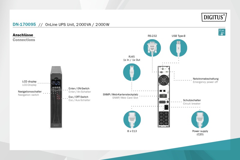 DIGITUS DN-170095 UPS OnLine, 2000 VA / 2000 W