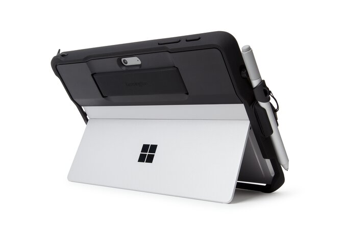 Pouzdro BlackBelt™ Rugged Case obklopuje zařízení Surface Go a chrání je proti pádům s využitím zabudovaného ručního popruhu umožňujícího bezproblémové přenášení. Kryt Type Cover se rychle připojuje nebo odpojuje bez snímání ochranného pouzdra, tvarovaný držák Surface Pen Holder se šňůrkou udržuje pero po ruce. Strategicky umístěné výřezy zachovávají nerušený přístup ke stojánku, tlačítkům, portů a kameře tabletu Surface Go.