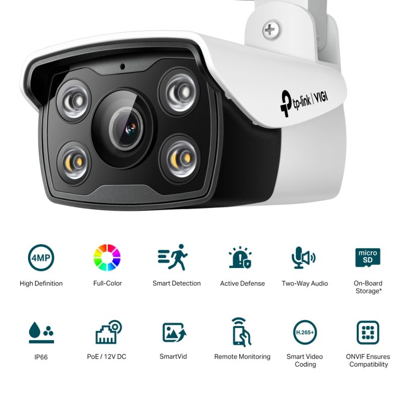 Nepřetržité barevné snímání: Spolehněte se na 24hodinové snímání barevných detailů i v černočerné tmě díky vysoce citlivému snímači a LED bodovým světlům. Voděodolná: Spolehlivé krytí IP66 pro stabilní venkovní provoz. Inteligentní detekce (detekce osob, detekce pohybu, narušení prostoru, překročení linie, neoprávněná manipulace s kamerou): Přijímejte oznámení a kontrolujte videokanály, když někdo překročí hranici, vstoupí do nastavené oblasti nebo překáží kameře. H.265+: Kamery přenášejí komprimovaný křišťálově čistý obraz, aniž by využívaly další šířku pásma, a šetří tak místo na disku, snižují zatížení sítě a náklady na monitorování – to vše bez snížení kvality obrazu. PoE / 12 V DC: Dva způsoby napájení vám poskytnou nejen větší pohodlí, ale také mimořádně usnadní zapojení.‡ Aplikace VIGI: Spravujte své zabezpečení přímo z dlaně pomocí aplikace VIGI. CAMERA Image Sensor 1/3” Progressive Scan CMOS Lens Fixed focal lens (2.8 mm / 4 mm / 6 mm) Aperture 2.8 mm: F1.6 4 mm: F1.6 6 mm: F1.6 Lens Mount M12 Viewing Angle (2.8mm) Horizontal FOV: 102°, Vertical FOV: 55°, Diagonal FOV: 122° (4mm) Horizontal FOV: 79°, Vertical FOV: 43°, Diagonal FOV: 93° (6mm) Horizontal FOV: 50°, vertical FOV: 27°, Diagonal FOV: 59° Day/Night Mechanism IR Cut Filter IR Working Distance 30m Illumination Distance 30 m Minimum Illumination 0 lux with IR/white Light Weatherproof Rating IP66 Digital Noise Reduction 3D DNR WDR DWDR NETWORK Security Password Protection, HTTPS Encryption, IP Address Filter, Digest Authentication Protocol TCP/IP, UDP, ICMP, HTTP, HTTPS, DHCP, DNS, RTSP, NTP, UPnP UDP, SSL/TLS API ONVIF Simultaneous Live View 3 Main Streams & 3 Sub-Streams GENERAL Package Contents VIGI Network Camera Quick Start Guide Waterproof Cable Attachments Mounting Accessories Operating Temperature -30–60 °C Certifications CE, RCM, BSMI, VCCI, RoHS, NTRA, KC Dimensions( H X W X D ) 78 × 70 × 174 mm Material Plastic Weight 195g General Features Two Streams, Mirror, Privacy Masks, Password Reset via E-mail, HTTP Listening Power Supply 12V DC ± 5%, 5.5mm Coaxial Power Plug PoE (802.3af/at, class 0) Power Consumption 12V DC: Max 7.5W PoE: Class 0 VIDEO/IMAGE Video Compression Main stream: H.265+/H.265/H.264+//H.264 Sub-Stream: H.265/H.264 Frame Rate & Resolutions Main Stream Frame Rate: 1fps, 5fps, 10fps, 15fps, 20fps, 25fps, 30fps Resolution: 2560x1440, 2304x1296, 2048x1280, 1920x1080 Sub-Stream Frame Rate: 1fps, 5fps, 10fps, 15fps, 20fps, 25fps, 30fps Resolution: 640x480, 352x288, 320x240 Video Streaming Main Stream Sub-Stream Image Settings Mirror, Brightness, Contrast, Saturation, Sharpness, Exposure, WDR, White Balance Adjustable by Client Software Image Enhancement BLC/3D DNR/Prevent Overexposure to Infrared Light Video Bit Rate Main Stream: 256 Kbps to 4 Mbps Sub-Stream: 64 Kbps to 512 Kbps SMART FEATURE-SET Smart Event Area Intrusion Detection, Line-Crossing Detection, Human Detection Basic Event Motion Detection, Camera Tampering Detection, Exception ( illegal login) Linkage Method Trigger Notification: ONVIF, HTTPS Region of Interest 1 Region INTERFACES Network Interface 1 RJ45 10/100M Self-Adaptive Ethernet Port Audio Input Built-in Microphone Audio Output Built-in Speaker Button Reset Button On-board Storage Built-In Memory Card Slot, Support MicroSD Card, Up to 256 GB |