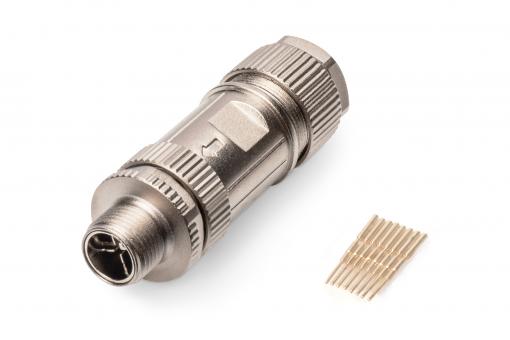 Zástrčka M12, krytí X, IP67 kat. 6A, montáž v terénu, přímá