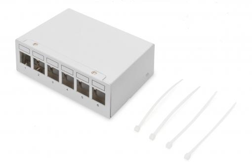 Modulární stolní patch panel, stíněný 6 portů, světle šedý
