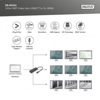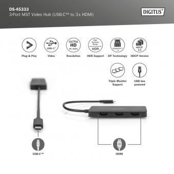 USB-C - 3x HDMI MST Video Hub DP 1.4, HDMI 2.0, 4K/60Hz