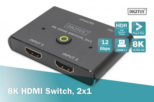 Pohodlné přepínání mezi dvěma zdroji signálu 8K HDMI stisknutím tlačítka nebo automatickou detekcí - bez problémů s opětovným zapojením kabelů. Podporuje rozlišení až 8K/60Hz HDMI 2.1 Spínání zdroje signálu pomocí přepínače Automatická detekce: Pokud jsou připojeny dva zdroje, spínač detekuje, který je zapnutý a změní tento vstup Plug & Play Přenosová rychlost: až 48 Gb/s Podporuje HDR (vysoký dynamický rozsah) Napájení pomocí kabelu Micro-USB Podporuje rychlosti signálu HDMI 2.1, 2.0 a 1.4 POPIS Pohodlné přepínání mezi dvěma zdroji signálu HDMI stisknutím tlačítka nebo automatickou detekcí - bez problémů s opětovným zapojením kabelů. Podporuje rozlišení až 8K/60Hz. Napájení je zajištěno pomocí přiloženého kabelu Micro-USB. TECHNICKÉ ÚDAJE 2x vstup HDMI 1x HDMI výstup 1x přepínač 1x Micro-USB vstup 2x stavová LED Podporuje rozlišení až 8K/60Hz HDMI 2.1 Spínání zdroje signálu pomocí přepínače Automatická detekce: Pokud jsou připojeny dva zdroje, spínač detekuje, který je zapnutý a změní tento vstup Plug & Play Přenosová rychlost: až 48 Gb/s Podporuje HDR (vysoký dynamický rozsah) Napájení pomocí kabelu Micro-USB Podporuje rychlosti signálu HDMI 2.1, 2.0 a 1.4 Pouzdro: hliník Rozměry: D 7 x Š 5.7 x V 1.3 cm Hmotnost: 50 g Barva: Černá OBSAH BALENÍ 1x 8K HDMI přepínač, 2x1 1x Micro USB kabel, 100 cm 1x QIG |