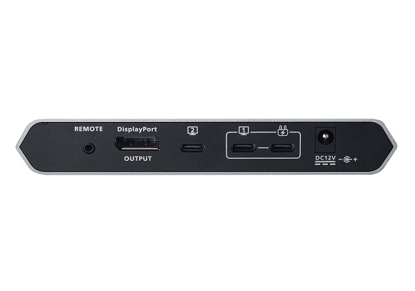 1x US3311 2portový 4K DisplayPort USB-C KVM dokovací přepínač s Power Pass-Through