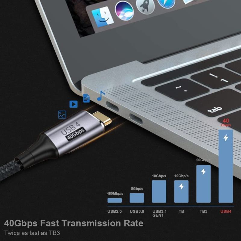 Tento kabel USB4™ nabízí extrémně vysokou přenosovou rychlost až 40 Gbit/s, takže je ideální pro datově náročné aplikace. Přeneste videa ve vysokém rozlišení na monitory a televizory a vychutnejte si ostrý obraz a vynikající zvuk. Umožňuje napájet nebo nabíjet až do výkonu 240W - První konektor: USB typ C samec - Druhý konektor: USB typ C samec - Přenosová rychlost: 40 Gbit/s, až 80x rychlejší než standardní USB2.0 - Zpětně kompatibilní s USB3.2, USB3.0, USB2.0 a Thunderbolt 3 - Napájení 48V / 5A ( Napájení PD3.0, výkon napájení až 240W ) - Rozlišení videa 8K@60Hz, až 40Gbps (podporuje DisplayPort Alt Mode 2.0) - Zalévané konektory, které se dají zasouvat oboustranně,v libovolné orientaci. - Chipset: VL153 - E-Marker pro USB-C kabely - Měděný vnitřní vodič - Trojité stínění - Kabel potažen jemným bavlněným potahem - Barva kabelu: černá - Hliníkové konektory barvy: Silver Grey - Balení PVC sáček s etiketou a EAN kódem - Délka: 0,8m |