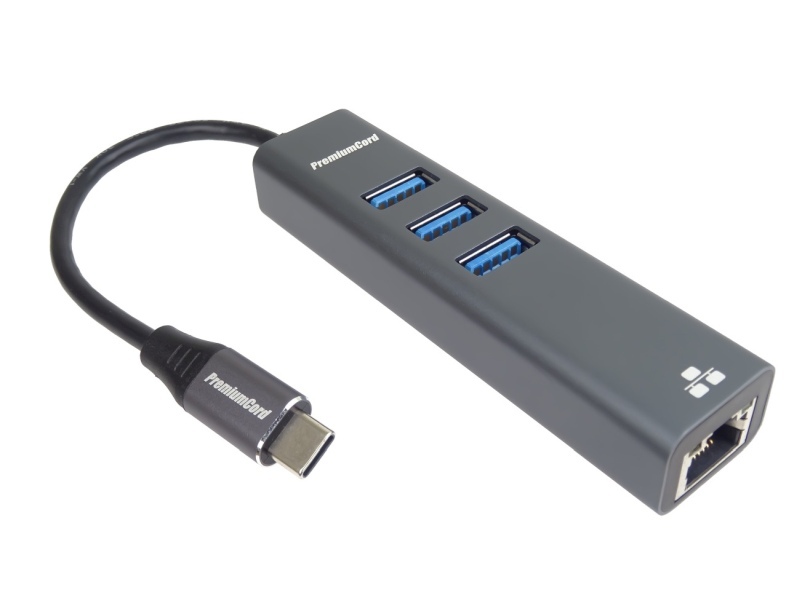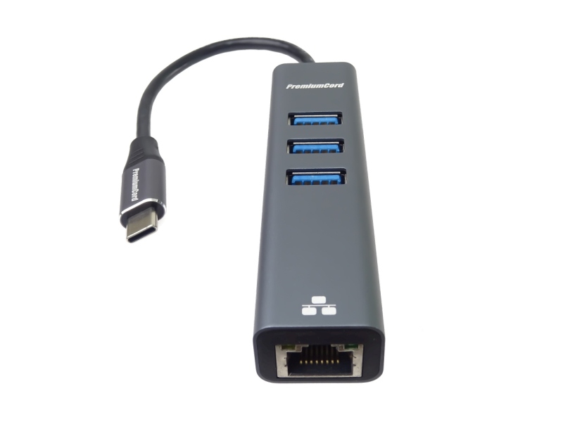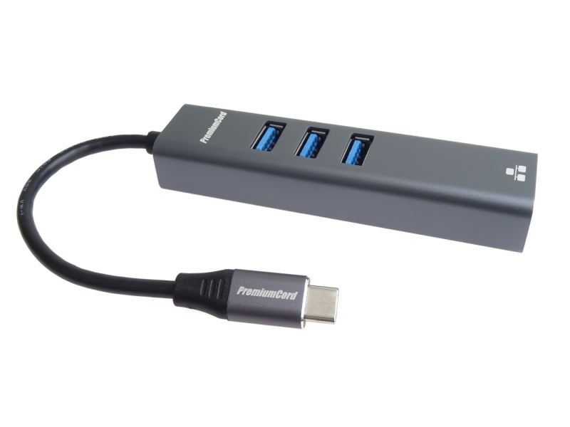 PremiumCord Adapter USB-C na Gigabit 10/100/1000Mbps + 3x USB3.0 konektor