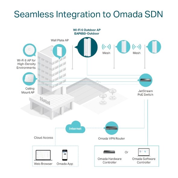Přístupový bod TP-Link EAP650-Outdoor s podporou Wi-Fi 6 a s rychlostí až 3 Gbit/s se hodí pro montáž na stěnu či sloup. Poskytne vám připojení doma i ve firmě. Využijete ho na zahradě, pro venkovní Wi-Fi kamery, pro přístřešek, bazén, venkovní zahrádku restaurace, amfiteátr, park či třeba školní hřiště. Zajistí vám rychlé a stabilní připojení s dlouhým dosahem díky chytré anténě a výkonnému zesilovači.