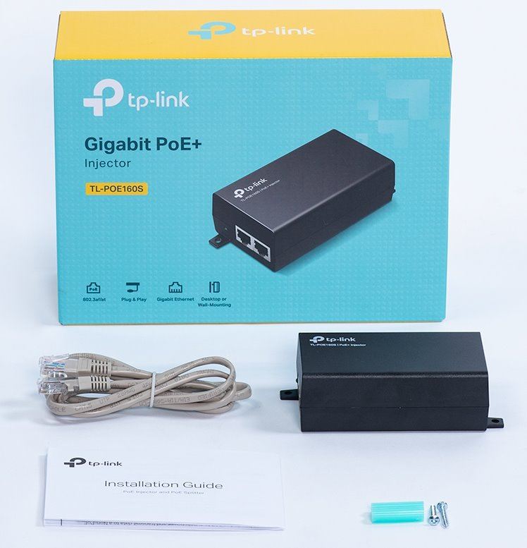 TL-POE160S je velmi robustní Gigabitový napájecí PoE+ injektor, který podporuje 802.3af/at standardy s výkonem až 30W, což je vhodné řešení pro napájení většiny IP kamer s podporou PoE, VoIP, WiFi AP a dalších zařízení. Injektor má LED indikaci, 3-pinový napájecí konektor na 230V a dva RJ-45 porty z nichž první je určen na DATA a druhý na DATA + napájení.