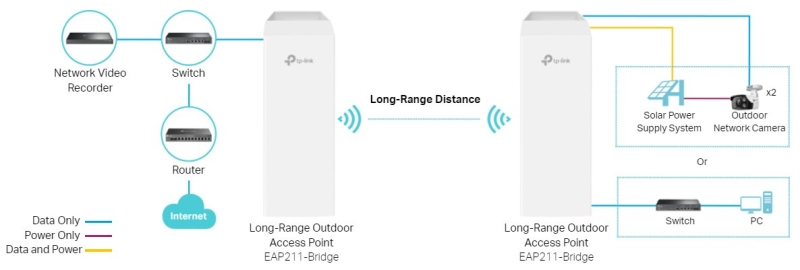 Pomocí TP-Link EAP211-Bridge KIT snadno vytvoříte transparentní spoj na vzdálenost až 1km. Díky standardu 802.11ac dosahuje linkové rychlosti až 867Mbps v pásmu 5GHz. Nechybí podpora technologií jako Mesh, MU-MIMO, Beamforming. Pro maximálně efektivivní nasazení podporují jednotky automatické párovaní a integraci do aplikace Omada SDN pro vzdálenou a centralizovanou správu.