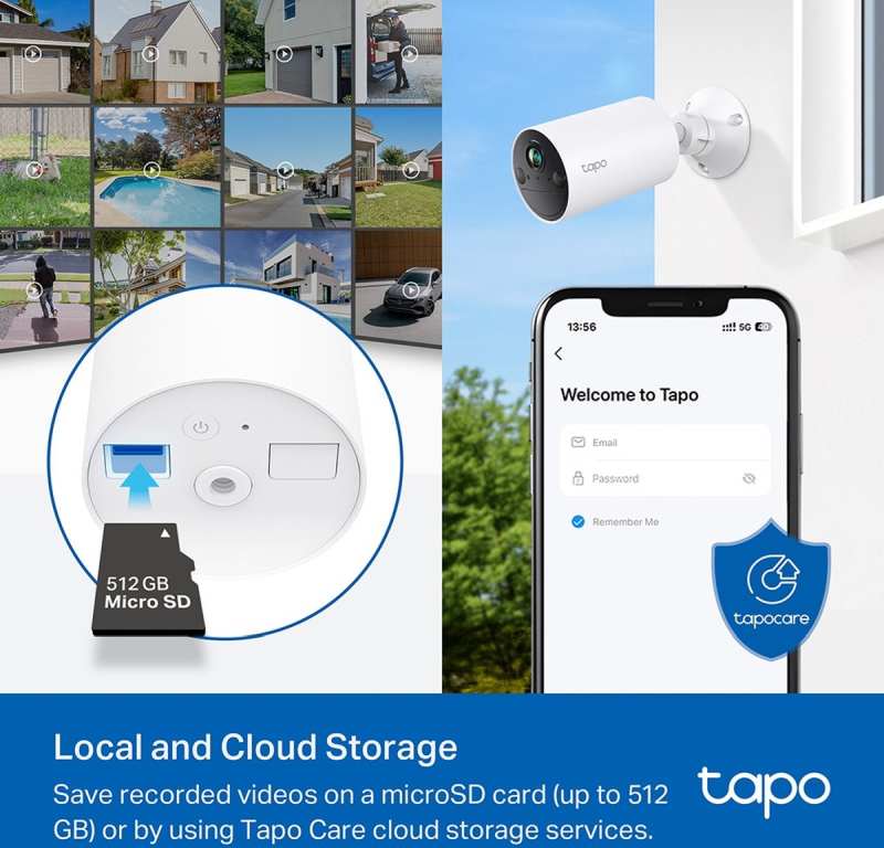 Užijte si naprostou svobodu díky bezdrátovému designu C410 napájeného baterií. Jeho všestrannost eliminuje omezení zásuvek a umožňuje ultraflexibilní vnitřní a venkovní bezpečnostní monitorování odkudkoli. Komunikujte s hosty nebo přepravci na dálku prostřednictvím čistého, obousměrného zvuku, který nabízí pohodlí, i když jste pryč. Tapo C410, kompatibilní s Alexa a Google Assistant, vám umožňuje kontrolovat váš dvorek pomocí hlasových příkazů. I během bouřky, výpadku proudu nebo přerušení Wi-Fi Tapo C410 pokračuje v nahrávání a zajišťuje konzistentní zabezpečení. Klíčové vlastnosti Bezdrátová instalace, instalace téměř kdekoli: Eliminuje potřebu zásuvek a umožňuje flexibilní umístění. Dodejte svému domovu zabezpečení, ať jste kdekoli a kdykoli. Vynikající obraz 2K 3MP: Zachyťte každý detail v křišťálově čistém rozlišení 2K s pokročilými algoritmy zajišťujícími perfektní expozici ve dne i v noci. Barevné noční vidění: Podívejte se na noc v živých barvách s objektivem s velkou světelností a vestavěnými reflektory účinnými až do vzdálenosti 30 stop (9 m). Prodloužená životnost baterie: Díky až 180 dnům zabezpečení na jedno nabití, Tapo C410 minimalizuje údržbu. Flexibilní možnosti úložiště: Vyberte si z místního úložiště microSD až do 512 GB nebo ze zabezpečené cloudové služby Tapo Care pro další klid. Inteligentní detekce osob: Získejte upozornění, když je detekována osoba, čímž se omezí falešná upozornění a zbytečná upozornění. Inteligentní telefonická upozornění: Přizpůsobte si zóny aktivity pro přesnou detekci pohybu a telefonická upozornění se zaměřením na to, na čem skutečně záleží. IP65 Odolnost vůči povětrnostním vlivům: Nabízí vynikající vodotěsný a prachotěsný výkon pro venkovní scénáře. Obsah balení Přístroj Držák USB adaptér USB adaptérový kabel 3x šrouby a kotvy Montážní šablona Rychlý návod |