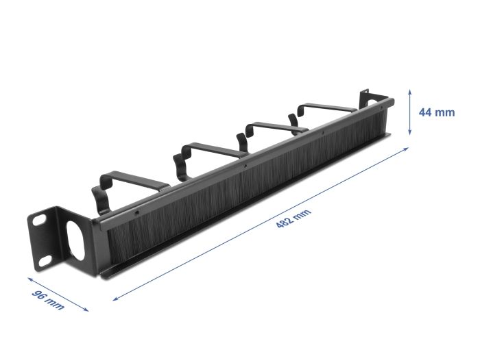 Tento kartáčový pruh značky Delock je vhodný k instalaci do síťové skříně rozměru 19”. Správné položení kabelů Síťové kabely jsou jednoduše provlečeny zepředu dozadu, aby nebylo vidět na kabely uvnitř síťové skříně, a aby skříň vzbuzovala celkově upravený dojem. S bočním vstupem pro kabel Na boční straně je panel vybaven otvorem umožňujícím snadný přístup pro kabel. Háček na vedení kabelů pro optimální správu kabelů Pomocí pevných háčků lze patch kabely úhledně vést vodorovně. Ochrana proti vniknutí cizorodých tělísek Dodané nylonové kartáče zamezují vniknutí prachu a nečistot. Technické detaily K montáži do síťové skříně rozměru 19”, 1U Panel se 4 háčky S bočním vstupem pro kabel (DxH): cca. 30 x 20 mm Nylonové kartáče Barva: černá Materiál: kov Rozměry (DxŠxV): cca. 482,6 x 96,2 x 44,0 mm Obsah balení 19” kartáčový pruh 4 x Šroubky 4 x klecové matice 4 x podložka Balení Box |