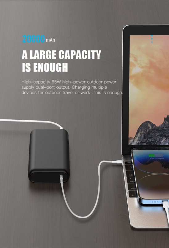 Tato efektivní powerbanka s kapacitou 20 000mAh, vybavená technologií Power Delivery 3.0 a výkonem 65W, je ideálním řešením pro dynamické lidi, kteří potřebují spolehlivý zdroj energie na cestách. Díky lithium-polymerovým bateriím a silnému výstupnímu výkonu dokáže tato powerbanka nabíjet většinu USB PD notebooků na trhu, což z ní dělá nepostradatelného pomocníka pro profesionály a studenty. <bKlíčové vlastnosti: Vysoce výkonné EV baterie použité v konstrukci: 21700 Li-ion (používané v elektromobilech), čtyři články, zajišťují přes 1000 nabíjecích cyklů a efektivní, dlouhodobou spolehlivost. Schopnost nabíjet notebooky a notebooky, takže je ideální pro lidi, kteří často pracují mimo domov. Výstupní výkon 65W USB Type-C PD, umožňující rychlé a efektivní nabíjení kompatibilních zařízení. USB Type C 65W vstup/výstup, zajišťující rychlé nabíjení jak powerbanky, tak zařízení k ní připojených. Dodatečný výstup USB typu A pro větší flexibilitu při nabíjení různých zařízení. Digitální LED displej, který zobrazuje aktuální úroveň nabití, umožňuje snadno sledovat stav baterie. Široká kompatibilita se standardy rychlého nabíjení, jako je QC 3.0, PD 3.0, SCP 22.5W, PPS, což z něj dělá univerzální řešení pro nabíjení nejrůznějších zařízení. Součástí dodávky je 30cm kabel USB Type-C pro pohodlí a přenosnost. Technické specifikace Kapacita: 20000mAh (3,7V 74Wh) Vstup: USB-C1: 5V/3A,9V/3A,12V/3A,15V/3A,20V/3,25A (PD65W) Výstup:USB-C1: 5V/3A, 9V/3A, 12V/3A, 15V/3A, 20V/3,25A (PD 65W) USB-C2: 5V/3A, 9V/3A, 12V2,5A USB-A: 5V/4,5A, 5V/3A, 9V/2A, 12V/1,5A (QC 18W) Celkový výstup:USB-C1+USB-C2: PD45W+PD30W USB-C1+USB-A: PD45W+QC18W USB-C1+USB-A+USB-C2: PD45W+QC15W USB-C2+USB-A: 5V/3A (15W)"" Velikost: 151,5*65,5*26mm Čistá hmotnost: 359 g Typ baterie: 21700 Li-ion baterie * 4ks Doby nabíjení:>1400 Barva:Černá" |