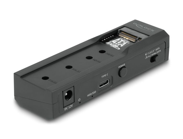 Tento převodník značky Delock umožňuje připojení SSD M.2 NVMe nebo SATA, ve formátu 2280, 2260, 2242 a 2230, nebo HDD nebo SSD 2.5” nebo 3.5” SATA přes rozhraní USB. Technické detaily Konektor: 1 x USB 10 Gbps USB Type-C™ samice 1 x M.2 klíč M slot 1 x SATA 6 Gb/s 22 pin samice 1 x DC jack Chipset: Realtek RTL9210B Podporuje M.2 moduly ve formátu 2280, 2260, 2242 a 2230 s klíčem M nebo klíčem B+M na základě SATA nebo PCIe (NVMe) Maximální výška komponentů na modulu: 1,5 mm je podporována aplikace oboustraných modulů Pro 2.5” a 3.5” SATA HDD / SSD Podporuje NVM Express (NVMe) Podporuje S.M.A.R.T. Podporuje TRIM Podpora Native Command Queuing (NCQ) Rychlost přenosu dat 10 Gbps Podporuje UASP 2 x LED indikující napájení a přístup Možnost bootování Funkční tlačítka: 1 x On-/ Off vypínač 1 x přepínač pro diskovou mechaniku M.2 nebo 2.5” / 3.5” Rozměry (DxŠxV): cca. 107 x 35 x 24 mm Hot Plug, Plug & Play Specifikace napájecího zdroje Napájení Vstup: AC 100 ~ 240 V / 50 ~ 60 Hz / 1,5 A Výstup: 12 V / 2 A Zem vně, plus uvnitř Rozměry: vnitřní: o cca. 2,5 mm venkovní: o cca. 5,5 mm délka: cca. 10 mm Systémové požadavky Android 9.0 nebo vyšší Chrome OS Linux Kernel 5.15 nebo vyšší Mac OS 12.4 nebo vyšší Windows 10/10-64/11 iPad Air (4-mé generace) nebo vyšší iPad Pro (3-mé generace) nebo vyšší Surface Pro 7 PC nebo notebook s volným USB Typ-A portem nebo Zařízení s volným portem USB Type-C™ nebo volný port Thunderbolt™ 3 nebo Thunderbolt™ 4 Obsah balení USB Type-C™ převodník Kabel USB-C™ samec na USB-C™ samec, délka cca. 80 cm Kabel USB-C™ samec na USB Typ-A samec, délka cca. 80 cm 3 x gumová špička Externí napájecí zdroj 12,0 V / 2,0 A Uživatelská příručka Balení Kartonová krabice |