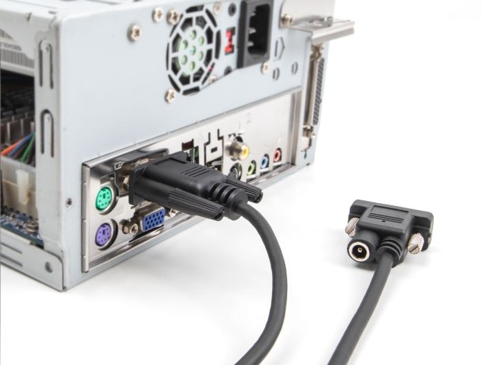 Tento sériový kabel D-Sub9 značky Delock umí napájet zařízení přes napájecí zdroj na pinu č. 9. Je vhodný pro systémy registračních pokladen (POS), tiskárny, čtečky čárových kódů atd. Zdroj proudu Zdroj napájení na zásuvce D-Sub9 kabelu RS-232 lze implementovat např. napájecím zdrojem a příslušnou stejnosměrnou přípojkou. Technické detaily Konektor: 1 x sériový D-Sub9 samice se šroubky (pin 9 není připojen) 1 x sériový D-Sub9 samice se šroubky (na pinu 9 je stejnosměrné napájení) 1 x DC 5,5 x 2,1 mm samice Signály: TxD, RxD, RTS, CTS, DTR, DSR, DCD, GND Přiřazení pinů: 1:1 Proud na pinu č. 9: max. 3 A Průřez kabelu: 26 AWG Izolátor: PVC Barva: černá Typ šroubku: #4-40 UNC Průměr kabelu: cca. 4,5 mm Délka kabelu včetně konektorů: cca. 2 m Specifikace napájecího konektoru Vstup: Stejnosměrná DC zásuvka Výstup: Zásuvka D-Sub, pin 9 Stínění venku, Plus uvnitř Rozměry: vnitřní: o cca. 2,1 mm venkovní: o cca. 5,5 mm Obsah balení Kabel Balení Plastová taška se zipem |