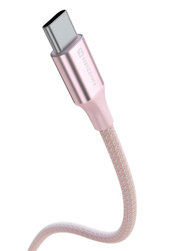SWISSTEN DATOVÝ KABEL TEXTILE II USB-C / USB-C 1,5 M RŮŽOVÝ