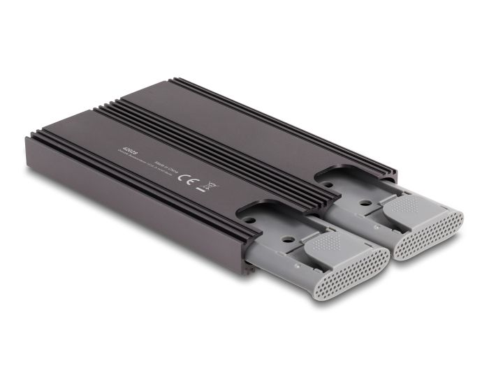 Toto pouzdro značky Delock umožňuje instalaci dvou SSD M.2. Používat a provozovat lze buďto SSD M.2 PCIe NVMe nebo SSD M.2 SATA ve formátech 2280, 2260, 2242 a 2230. Robustní kovový kryt s chladicími lamelami zajišťuje optimální teplotu paměti. Kombo pouzdro Velkou výhodou tohoto krytu Delock M.2 je, že do pouzdra lze vložit jak disky SATA, tak i PCIe (NVMe) M.2 SSD. Paměť bude automaticky rozpoznána čipovou sadou a pak ji bude lze používat. Instalace SSD bez nástrojů Speciální funkcí tohoto pouzdra je, že k instalaci SSD M.2 není potřeba žádných nástrojů. Vnitřní díl lze vytáhnout stlačením tlačítka, načež bude SSD vložen do slotu a přitlačen gumovou spojkou k desce. Technické detaily Konektor: externí: 2 x USB 10 Gbps USB Type-C™ samice interní: 2 x M.2 klíč M slot Chipset: Realtek RTL9210B Podporuje M.2 moduly ve formátu 2280, 2260, 2242 a 2230 s klíčem M nebo klíčem B+M na základě SATA nebo PCIe (NVMe) Maximální výška komponentů na modulu: 1,5 mm je podporována aplikace oboustraných modulů Podporuje NVM Express (NVMe) Možnost bootování Rychlost přenosu dat 10 Gbps 2 x LED indikující napájení a přístup Kovová skříňka Rozměry (DxŠxV): cca. 110 x 74 x 13 mm Hot Plug, Plug & Play Systémové požadavky Android 10.0 nebo vyšší Chrome OS Linux Kernel 5.11 nebo vyšší Mac OS 11.2.3 nebo vyšší Windows 10/10-64/11 iPad Air (4-mé generace) nebo vyšší iPad Pro (3-mé generace) nebo vyšší Surface Pro 7 Zařízení s volným portem USB Type-C™ nebo volný port Thunderbolt™ 3 nebo Thunderbolt™ 4 nebo Jeden volny USB Typ-A port Obsah balení Externí pouzdro M.2 2 x Kabel USB-C™ samec na USB-C™ samec (s adaptérem na USB Typu-A samec), délka cca. 45 cm 2 x tepelně vodivé podložky 2 x tepelně vodivá destička 4 x gumová špička Uživatelská příručka Balení Kartonová krabice |