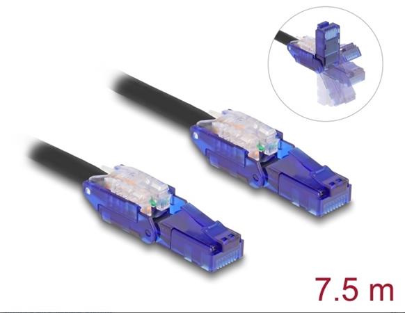 Tento síťový kabel od Delocku může být použit pro připojení různých síťových zařízení, např. NIC ke switchi nebo patch panelu. Šroubky konektoru zabezpečí spojení a zabrání náhodnému odpojení kabelu. S výklopnými zástrčkovými konektory (180°) Konektory mohou být vyklopeny o 90° nahoru nebo dolů. Umožňují také prostorově úspornou instalaci do úzkých prostor. Technické detaily Konektor: 1 x RJ45 samec 90° pravoúhlý nahoru / dolů 1 x RJ45 samec 90° pravoúhlý nahoru / dolů 1:1 spojení Cat.6 specifikace Rychlost přenosu dat až 1 Gbps Šířka pásma: 250 MHz Nestíněný (UTP) Průřez kabelu: 24 AWG Zlacené konektory: 50 u” Průměr kabelu: cca. 6,0 mm Materiál obalu kabelu: LSZH (bez halogenů) Provozní teplota: -20 °C ~ 60 °C Barva: černá Délka: cca. 7,5 m Obsah balení RJ45 kabel Balení Plastová taška se zipem |