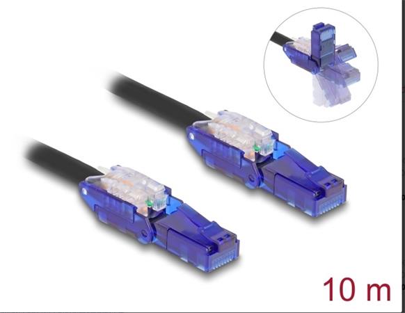 Tento síťový kabel od Delocku může být použit pro připojení různých síťových zařízení, např. NIC ke switchi nebo patch panelu. Šroubky konektoru zabezpečí spojení a zabrání náhodnému odpojení kabelu. S výklopnými zástrčkovými konektory (180°) Konektory mohou být vyklopeny o 90° nahoru nebo dolů. Umožňují také prostorově úspornou instalaci do úzkých prostor. Technické detaily Konektor: 1 x RJ45 samec 90° pravoúhlý nahoru / dolů 1 x RJ45 samec 90° pravoúhlý nahoru / dolů 1:1 spojení Cat.6 specifikace Rychlost přenosu dat až 1 Gbps Šířka pásma: 250 MHz Nestíněný (UTP) Průřez kabelu: 24 AWG Zlacené konektory: 50 u” Průměr kabelu: cca. 6,0 mm Materiál obalu kabelu: LSZH (bez halogenů) Provozní teplota: -20 °C ~ 60 °C Barva: černá Délka: cca. 10 m Obsah balení RJ45 kabel Balení Plastová taška se zipem |
