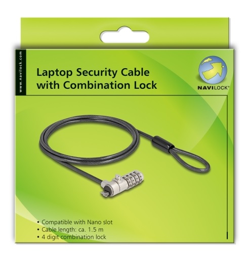 Tento bezpečnostní zámek notebooku od Navilocku umožňuje uzamčení různých zařízení, např. notebooků, projektorů, monitorů atd. kdekoliv. Lanko z uhlíkové oceli délky 1,5 m se zámkem na čtyřmístnou číselnou kombinaci lze snadno ovázat kolem předmětu jako je noha od stolu, židle a podobně, takže chrání zařízení před krádeží. Otočný kloub o 180° usnadňuje připevnění zámku. Kompatibilní s Nano Slotem Tento bezpečnostní zámek na laptop je kompatibilní s takzvaným Nano slotem, a proto je vhodný na mnoho obzvlášť lehkých a tenkých Ultrabooků. Otvor rozměrů 2,5 x 6,0 mm na krytu se nazývá Nano slotem. U mnoha zařízení je tento otvor označen symbolem zámku. Uhlíková ocel Tento kabel z uhlíkové oceli se vyznačuje obzvlášť vysokou odolností proti přeštípnutí a ochranou proti krádeži a vzhledem k hmotnosti pouhých 104 g a délce 1,5 m nabízí optimální mobilitu. Technické detaily Kabel z uhlíkové oceli 4 číslicový zámek Kompatibilní se slotem Nano 2,5 x 6,0 mm Průměr kabelu: cca. 4 mm Délka kabelu: cca. 1,5 m Barva: stříbrná / černá Váha: cca. 96 g Obsah balení Bezpečnostní zámek notebooku Vázací pásky na suchý zip Uživatelská příručka Balení Kartonová krabice |