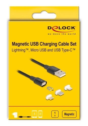 Tento nabíjecí kabel USB od Delocku se vyznačuje technologií magnetů a umožňuje snadné a rychlé připojení a odpojení zařízení od zdroje napájení. Použitím jednoho ze tří přiložených magnetických adaptérů lze nabíjet různá mobilní zařízení, tablety atd. přes rozhraní 8 pin, Micro USB-B nebo USB Type-C™. Adaptéry jsou navrženy tak, aby zůstaly uvnitř portu zařízení. Tak to může zabránit poškození portu zařízení a rovněž působí jako ochrana proti prachu. Nabíjecí kabel USB se může okamžitě připojit k zařízení pomocí kulatého magnetického konektoru. Kabel je díky robustnímu textilnímu stínění a kovovému pouzdru na obou koncích kabelu velmi robustní a odolný. Technické detaily Konektor: Kabel: USB 2.0 Typ-A samec > magnetický konektor Adaptér: magnetické rozhraní > 8 pin Lightning™ samec magnetické rozhraní > USB Typ Micro-B samec magnetické rozhraní > USB Type-C™ samec Podporuje jen funkci nabíjení Maximální výstupní proud: 3 A Napětí: 5 V Zelená indikace LED během nabíjení Průřez kabelu: 23 AWG napájecí vodiče Kabel s textilním stíněním Konektor v kovovém pouzdru Barva: černá Délka včetně konektorů cca. 1 m Systémové požadavky Napájecí zdroj s volným portem USB Typ-A samice Obsah balení Magnetický USB nabíjecí kabel 3 x magnetický adaptér Balení Kartonová krabice |