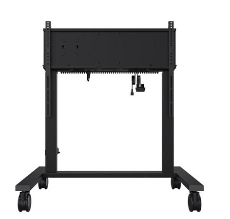 Motorized rolling stand with VESA mount | MT02E VESA Mount Compatibility: Podporuje VESA otvory až do max. 800 × 600 mm. Nastavitelná výška: Lze nastavit od 1160 mm do 2110 mm. Maximální nosnost: Až 120 kg. Podpora velikosti obrazovky: Vhodné pro displeje od 55 palců (1397 mm) do 105 palců (2667 mm). Mobilita: Vybaveno čtyřmi kolečky pro snadný pohyb. Bezpečnostní funkce: Obsahuje senzor proti kolizi, který zabraňuje poškození při nastavování výšky Specifikace Podporované velikosti displejů: 55” až 105”, podle standardu VESA Maximální zatížení: 120 kg (264 lbs) Rychlost zvedání: 35 mm/s (1,3 in/s) Délka zdvihu: 950 mm (37,4 in) Metoda ovládání výškového nastavení: Ovladač / APK Ochrana proti přiskřípnutí: Ano Maximální VESA: 800 × 600 mm Barva: Černá Rozměry produktu (D × Š × V): 1036 × 738 × 1160 - 2110 mm (40,7 × 29 × 45,6 - 83 in) Rozměry balení (D × Š × V): 1139 × 755 × 184 mm (44,8 × 29,7 × 7,2 in) Velikost krabice (D × Š × V): 1611 × 722 × 137 mm (63,4 × 28,4 × 5,4 in) Čistá hmotnost: 40 kg (88,1 lbs) Hrubá hmotnost: 43,5 kg (95,9 lbs) Materiál: Železo Obsah balení Stojan na kolečkách, ovladač, sada šroubů, 3 x napájecí kabely (3 m EU / UK / US), 2 x nástěnné držáky, uživatelský manuál (elektronický soubor), rychlý průvodce (QSG) Vhodný pro Interaktivní displeje: RP6504, RP7504, RP8604, RM6504, RM7504, RM8604, RE6504, RE7504, RE8604 Velkoformátová displeje : CS6501, CS7501, CS8601, SL6502K, SL8502K, ST7502, ST8602, ST5502S |