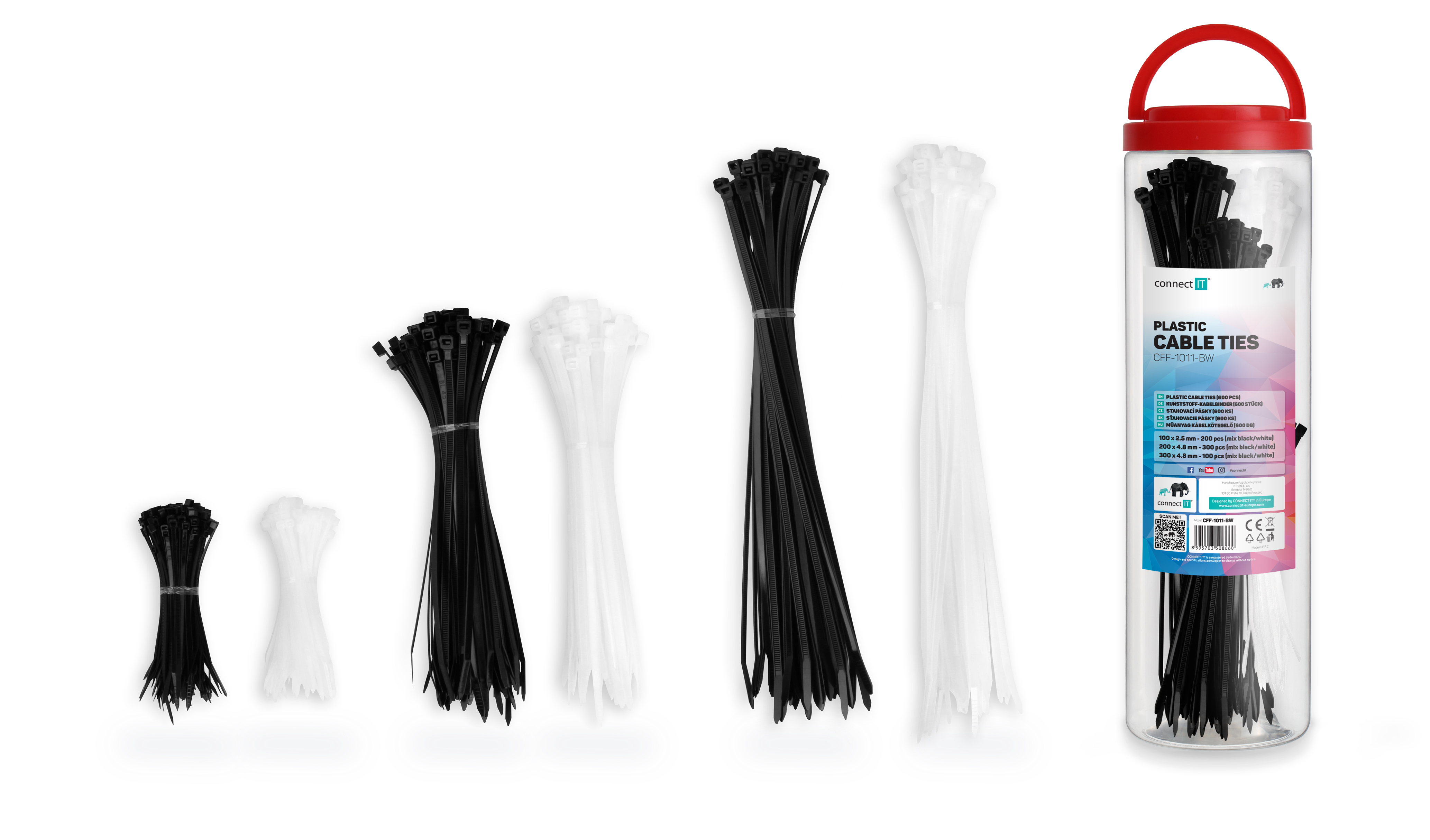 CONNECT IT ZipTie Stahovací pásky na kabely 600ks ČERNÁ/BÍLA